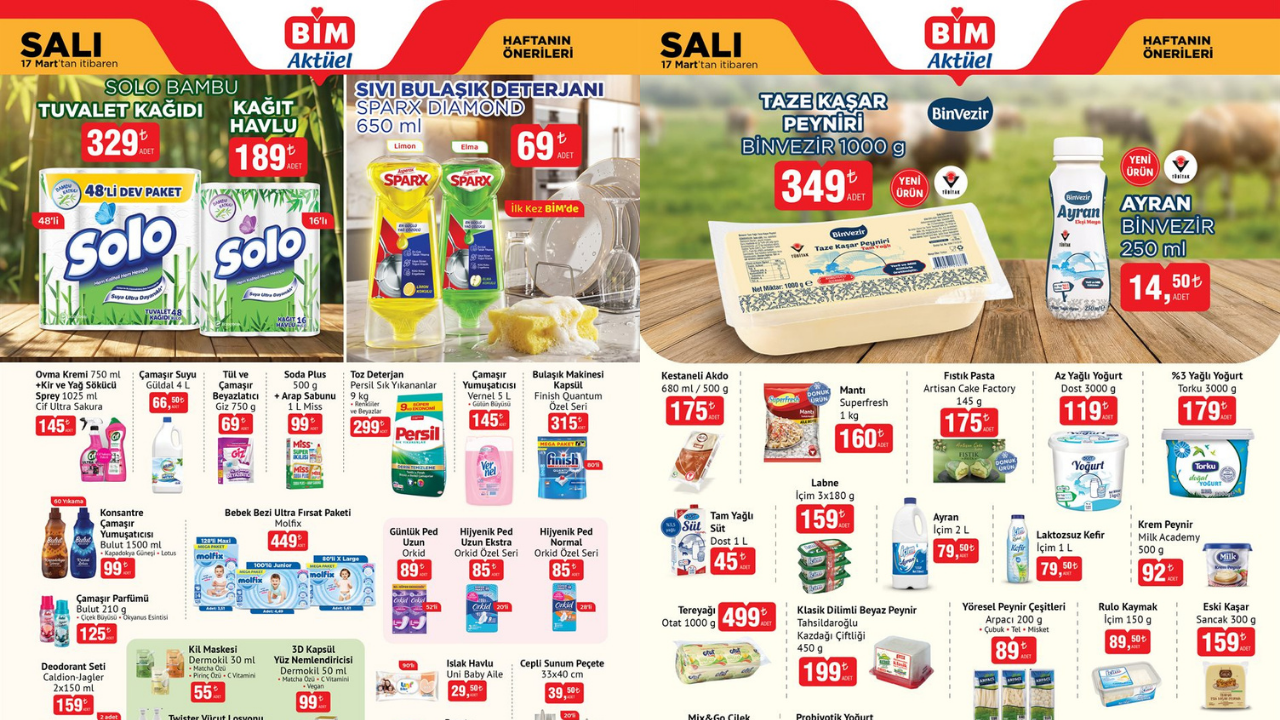 BİM, 17 Mart tarihinden itibaren geçerli olacak yeni aktüel kataloğu paylaşırken birçok ürünün indirimli olarak raflardaki yerini alacağını duyurdu.